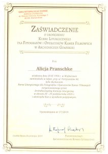 Fotografią zaczęłam interesować się już w liceum, później ukończyłam Sopocką Szkołę Fotografii - od lat fotografuję ludzi czy to w studio czy w plenerze. Ukończyłam kurs liturgiczny organizowany przez Archidiecezjalną Komisję Liturgiczną w Gdańsku uprawniający do wykonywania zdjęć i filmowania podczas celebracji liturgicznych.